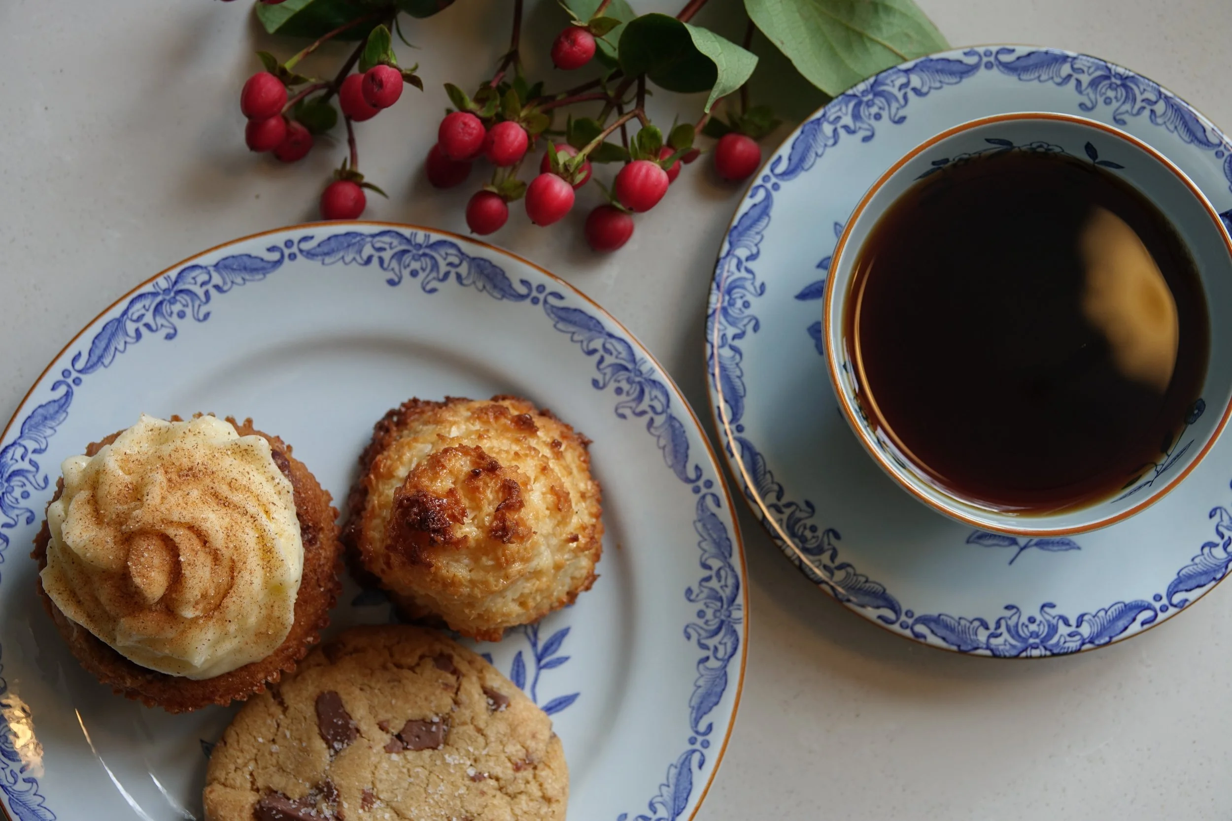Vi serverar alltid hembakat fika med kaffe/ te vid bordet och har en gemensam fikastund under våra träffar.